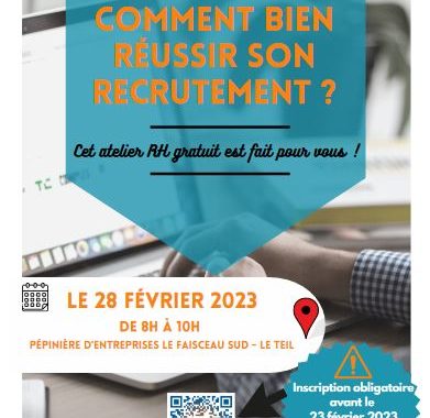 – 8h30 – 10 h : atelier animé par Margaux Henry, experte RH de la Maison de l’emploi et de la formation Ardèche méridionale