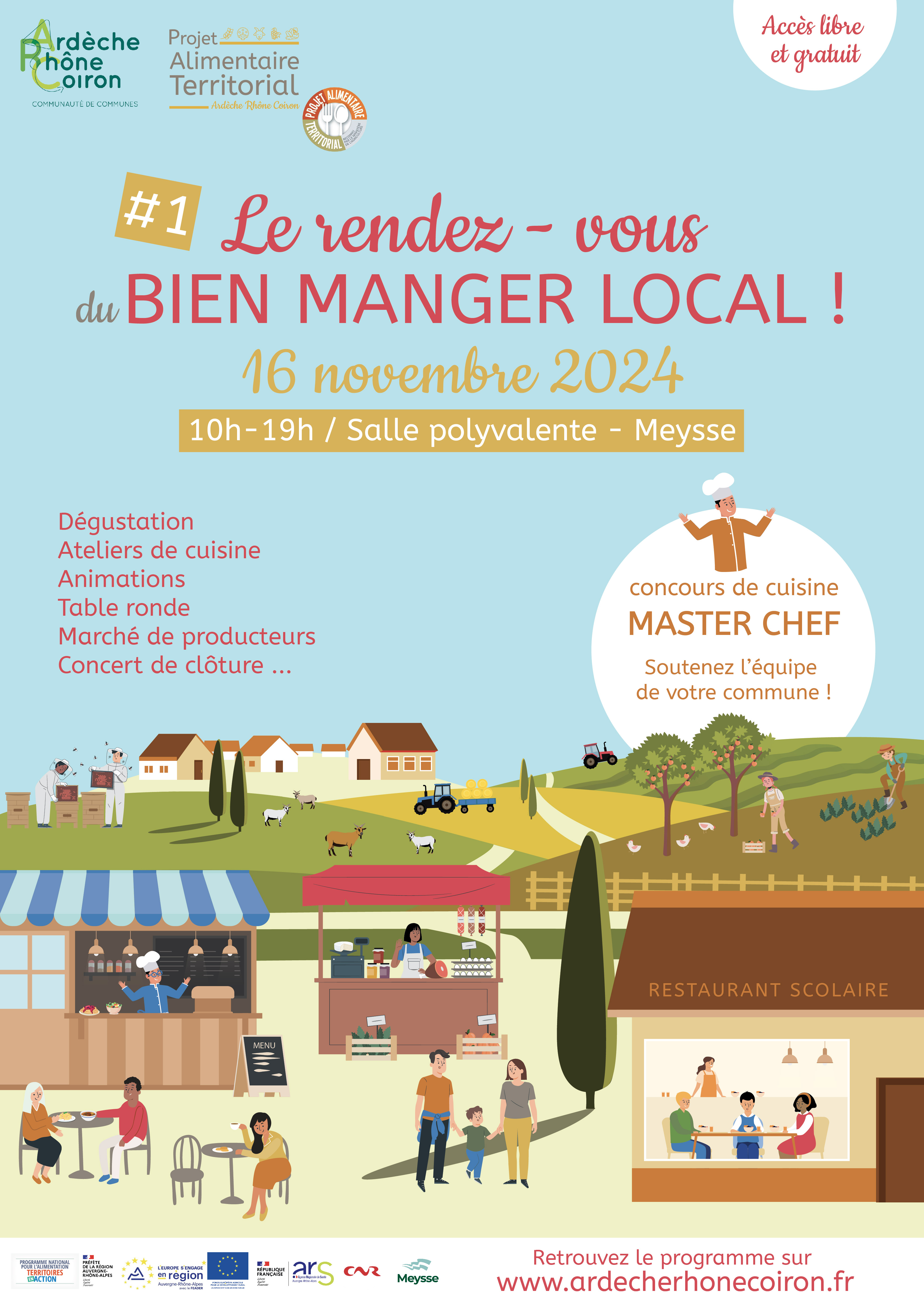 Salle polyvalente - Meysse 1 rue chevrière, Meysse, France??? LE PROGRAMME Dégustation / Ateliers de cuisine / Animations / Table ronde /Marché de producteurs /Concert de clôture ... ?? Découvrez le programme ici MASTER CHEF infos et règlement CONCOURS PHOTOS infos et règlement ?COMMENT VENIR ? Le covoiturage avec l’application Karos La navette gratuite SECTEUR SUD : Alba-la-Romaine > Saint-Thomé > Viviers > Le