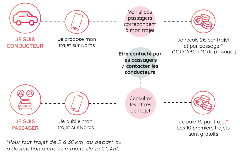 L’application mobile Karos peut bénéficier à toutes les personnes ou habitants effectuant des trajets du quotidien au départ ou à destination d’une commune de la CCARC.